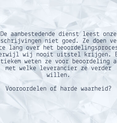 Hoe trots je ook bent, het draait niet alleen om indruk maken. Bij aanbestedingen gaat het vooral om het bieden van wat écht nodig is. Als je projecten niet volledig aansluiten op de specifieke eisen en criteria die in de aanbestedingsdocumenten zijn vermeld, dan loop je het risico dat je inschrijving al wordt afgewezen voordat deze de beoordelaars bereikt.