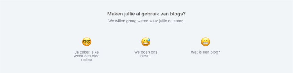 Met deze nieuwe functie prikkel je de nieuwsgierigheid en geef je potentiële klant een gevoel van eigenaarschap. Stel interessante vragen die relevant zijn voor je aanbod en biedt eenvoudige multiple choice antwoorden met leuke emoji’s.