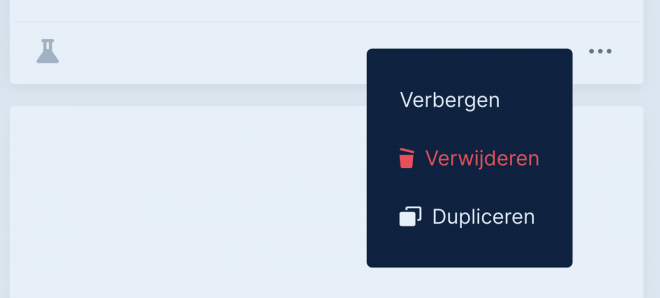 Deze functie ‘Dupliceren’ vind je onder de drie stipjes in de overzichten van de modules Offertes, Sjablonen en Catalogus.