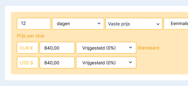 Offri kon tot vandaag alleen offertes maken in euro’s. Nu kun je meerdere munteenheden voeren en in je offertes gebruiken (één munteenheid per offerte). Selecteer in de workspace instellingen de munteenheden die je gebruikt. Bij producten kun je voor elke munteenheid de prijsinformatie invullen. Maak een nieuwe offerte en selecteer de juiste munteenheid. Alle producten en de begroting veranderen automatisch naar de gekozen munteenheid. Super handig als je offertes maakt in verschillende munteenheden.
