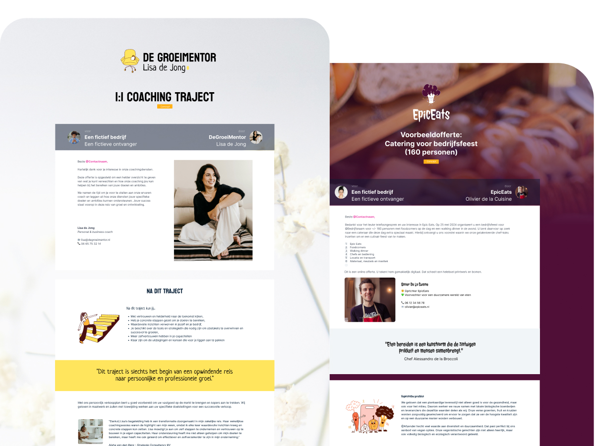 Verras je potentiële klanten met een strak vormgegeven offerte, die jouw bedrijf een professionele uitstraling geeft. Val op tussen je concurrenten en scoor die klus.