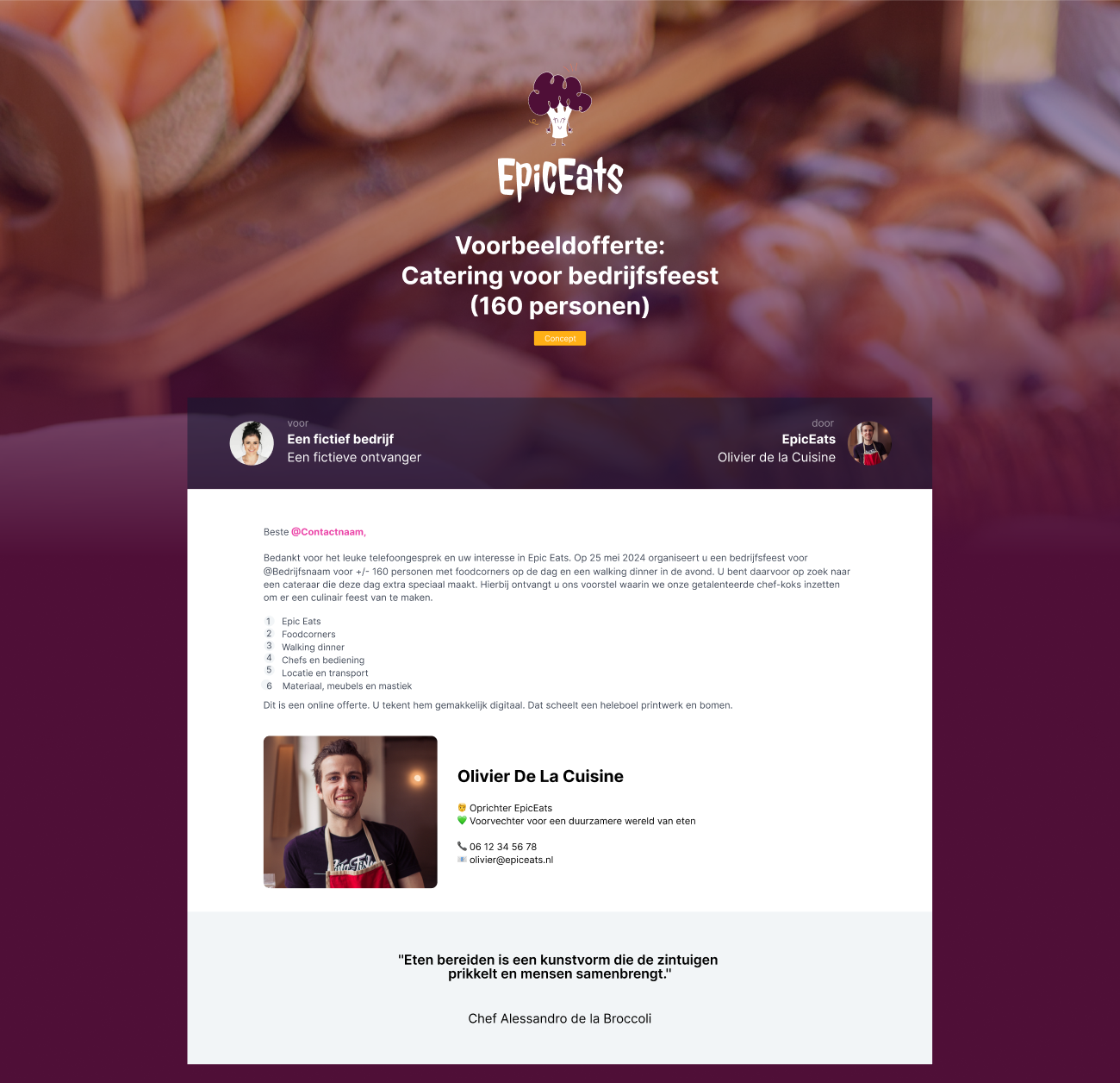 Voorbeeldofferte voor cateraars