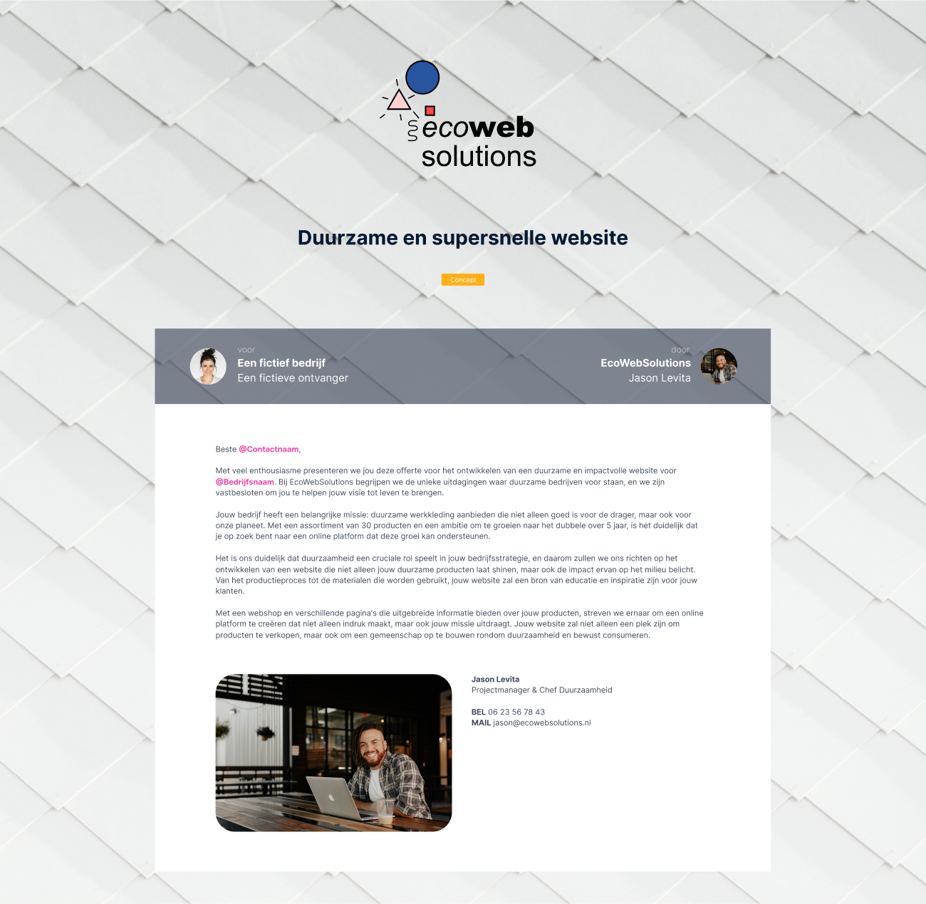 Naast het gemak van het maken van offertes, kan je met Offri ook inspiratie opdoen voor het maken van jouw eigen unieke offertes. Bekijk voorbeeld offertes om te zien hoe je een verhaal kan vertellen aan jouw doelgroep en hoe je de templates kan hergebruiken voor een gerichte offerte.